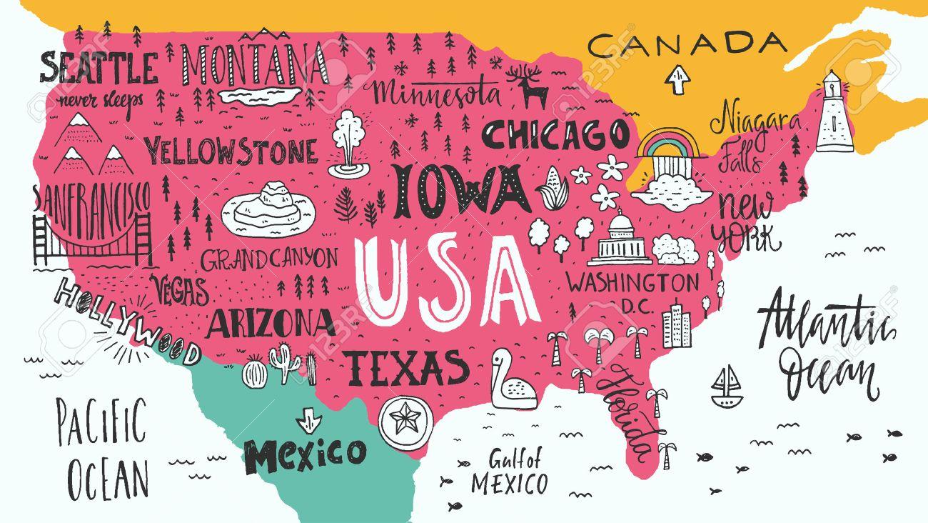 Достопримечательностей США на карте. Достопримечательности карта США (Северная Америка - Южная Америка) для печати. Достопримечательности карта США (Северная Америка - Южная Америка) скачать.